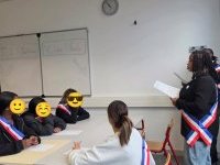 En cette fin d’année scolaire les élèves d’Esabac de Sarcelles se sont produits sur scène au Mémorial de la Shoah ainsi qu’à l’amphithéâtre du lycée J. J. Rousseau devant une centaine de collégiens et une trentaine de lycéens au total, en mettant en scène une adaptation des témoignages de Ginette Kolinka et d’Hélène Berr sur la persécution des juifs en France entre 1942 et ‘44 et leur déportation à Auschwitz.